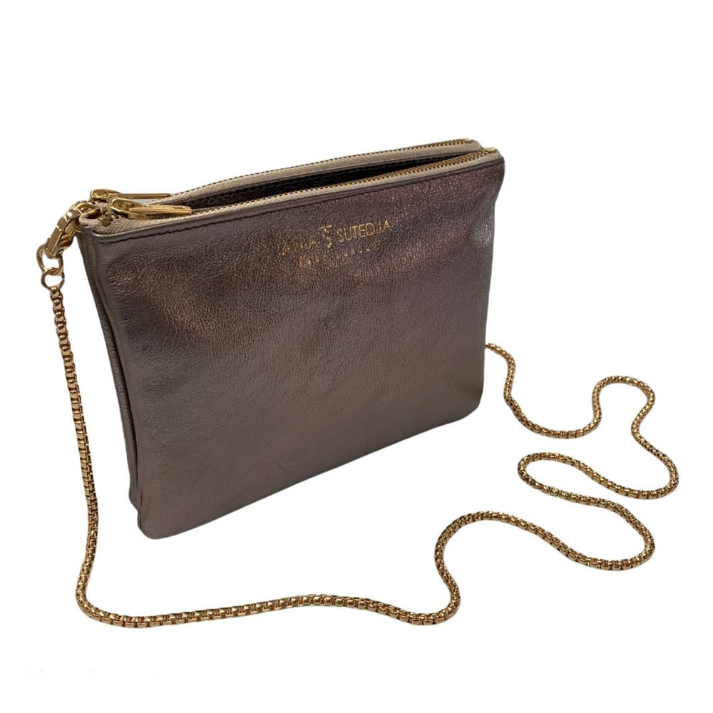 • High-quality brass colour zip closure